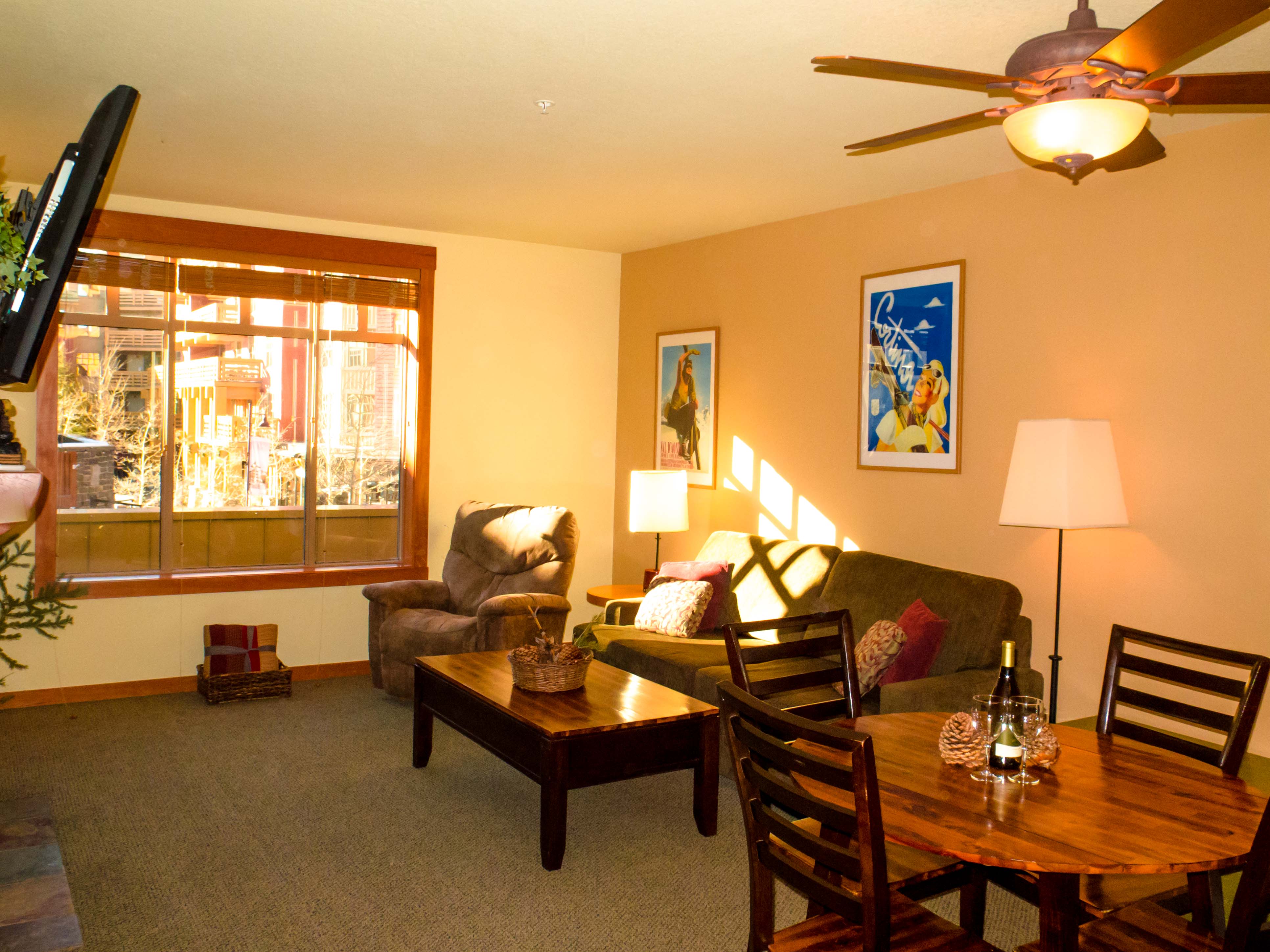 Located right inside the Village Lodge, our one bedroom condo has the best location in town. Others advertise a village location but in reality they are across the street and several blocks away. Not us. Our extra-large, immaculately clean condo (only one of four such oversized units in The Village) is just steps away from dozens of restaurants, bistros, and shops. But best of all, right downstairs you can catch the Gondola to the Mammoth Mountain Ski Resort. No more lugging your skis, boards and boots into your car, hunting for parking at the resort, and trudging for a mile to the ski lifts. Just park your vehicle in the underground parking garage, and never use it the rest of your stay!